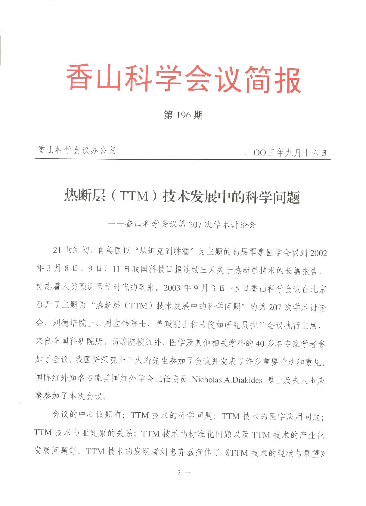 2003年9月香山科學會議發(fā)布香山科學會議簡報(第196期)熱斷層(TTM)技術(shù)發(fā)展中的科學問題